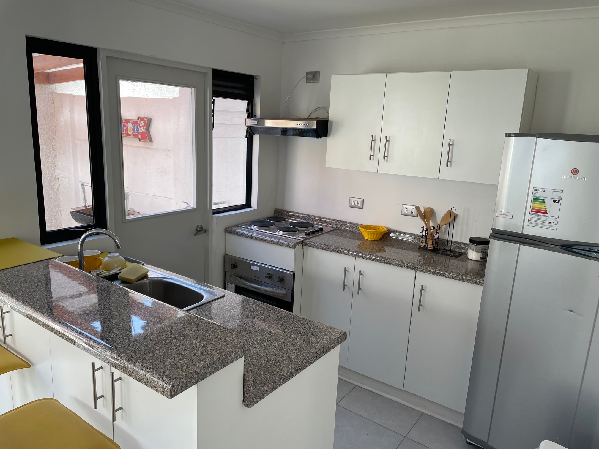 - Cocina abierta con mesón isla,