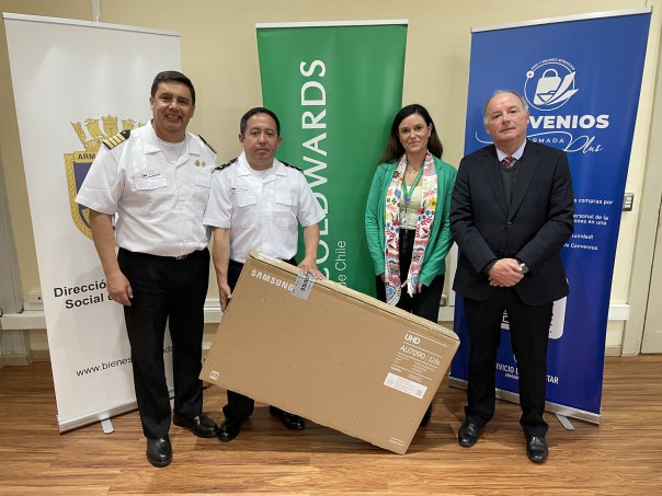 Con una sencilla ceremonia que fue presidida por el Jefe del Departamento de Infraestructura de la Dirección de Bienestar Social Capitán de Navío AB RN Héctor Veloso Cataldo junto al Agente Sucursal Las Salinas, Camilo Donoso Schmidt, el 11 de noviembre, en dependencias de la Dirección de Bienestar Social de la Armada, se efectuó la entrega de los 2 smart TV Samsung de 43 pulgadas que se sortearon entre los inscritos en el Convenio Armada Plus.